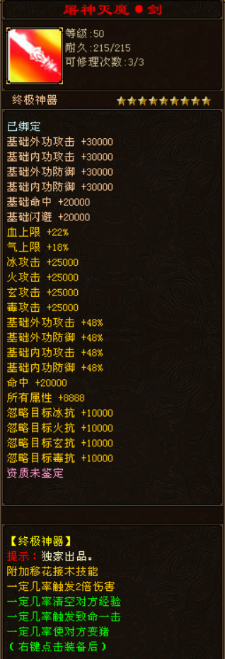 【版本简介】:本服开放8000倍经验,5000倍爆率,同步官方120技能做到所有门派真正的平衡,无垃圾门派!